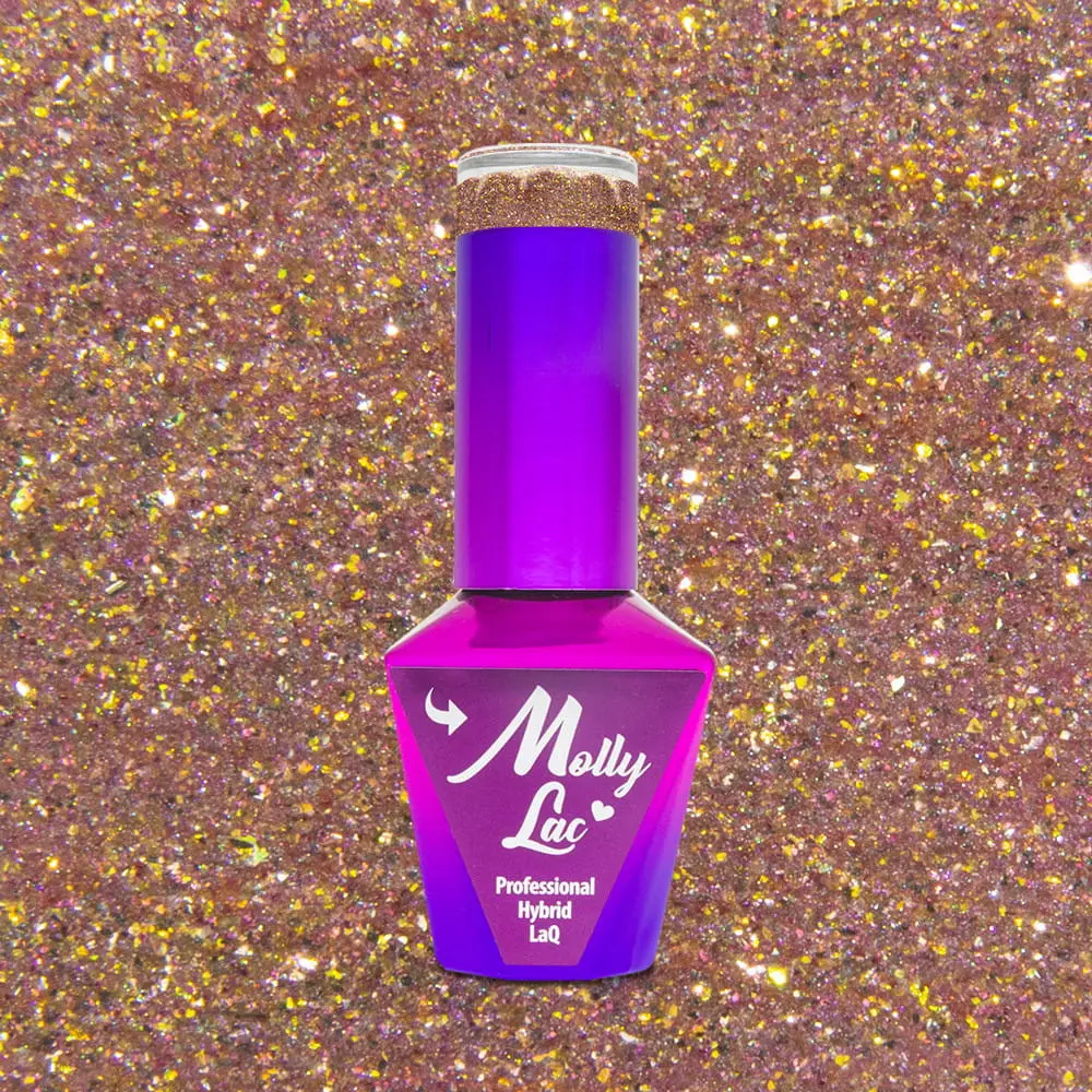 UV/LED gél lak na profesionálnu dekoráciu manikúry - staroružový so zlatými trblietkami.