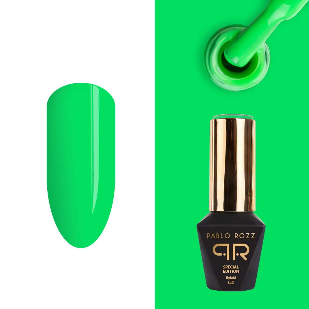 Bezvýpotkový hybridný UV/LED gél lak Molly Lac neónovo-zelenej farby.