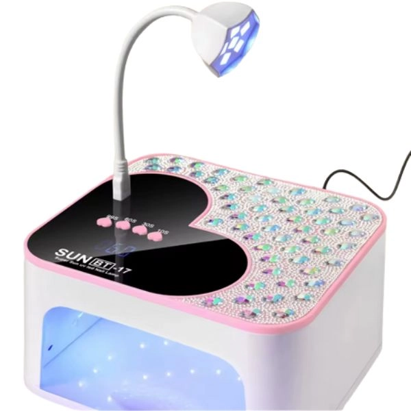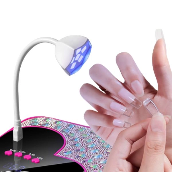 UV/LED lampa na nechty, pokrytá kamienkami, LCD displej v tvare srdca.